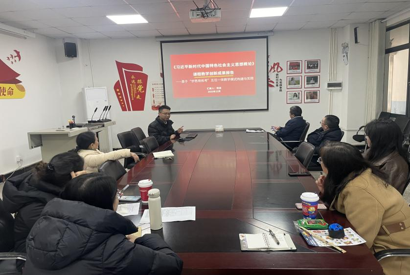 本网讯(文图/任雨阳 )2025年12月18日下午,“习近平新时代中国特色社会主义思想概论”教研室在学院会议室召开秋季学期第五次集体备课会,备课会分三项议程,一是学习中央经济工作会议精神;二是汇报课程教学创新成果;三是安排课程期末相关事宜。会议由教研室主任韩俊主持。