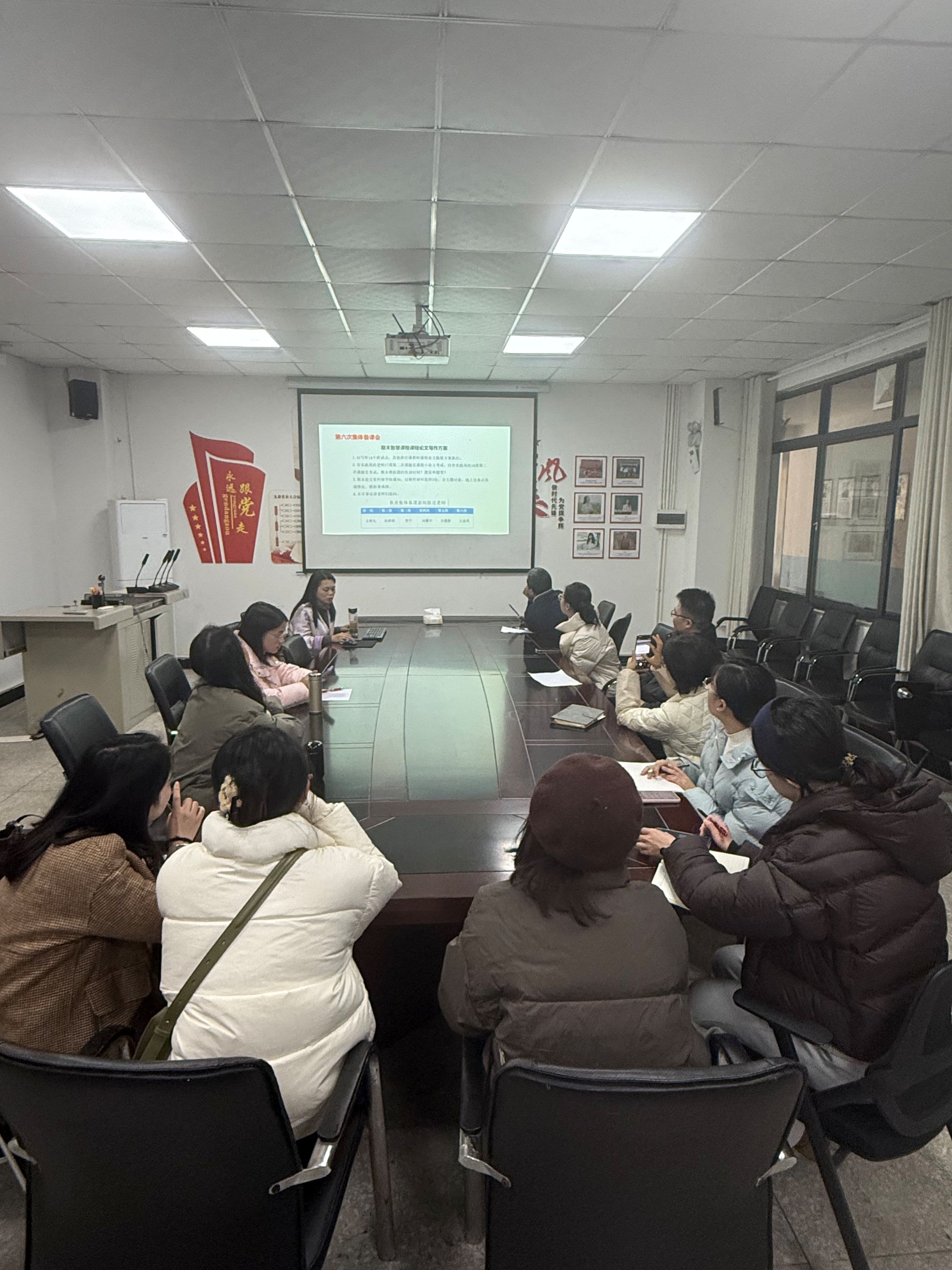 本网讯(文图/王金凤)12月18日下午,思想道德与法治教研室在学院会议室开展本学期第六次集体备课会。会议由教研室主任方德静主持,教研室全体任课教师参会,围绕讨论期末智慧课程课程论文写作方案和其他期末相关事宜。 为进一步优化智慧课程课程考核方式,提升教学评价的科学性与创新性,教研室组织了部分教师对14个班进行了期末考试开卷AI写作试点工作,其他班任课教师课程论文按原方案执行,此举旨在探索人工智能与课程论文写作融合的新模式,为后续教学改革积累实践经验。 随后,关于本学期期末考试其他事宜方面,明确期末考试时间,提醒大家结合课程教学大纲按时完成教学任务。针对期末模拟题的题量、题目类型、发放时间等进行了讨论,后续将结合教学实际进一步细化相关安排。 在期末资料提交方面,明确严格依照学院通知执行,教师需提交3份过程性材料,涵盖主题讨论记录、线上任务点完成情况以及模拟卷成绩,通过多元材料整合,全面反映学生的学习过程与学习效果。此外,会议还为教师预留了提问环节,以便及时解决方案执行过程中可能出现的各类问题。 此次集体备课会的召开,及时有效解决了教学过程中遇到的实际问题,进一步统一了教学思路、明确了工作重点,体现了教学改革的创新尝试,将助力我校智慧课程教学质量的持续提升。