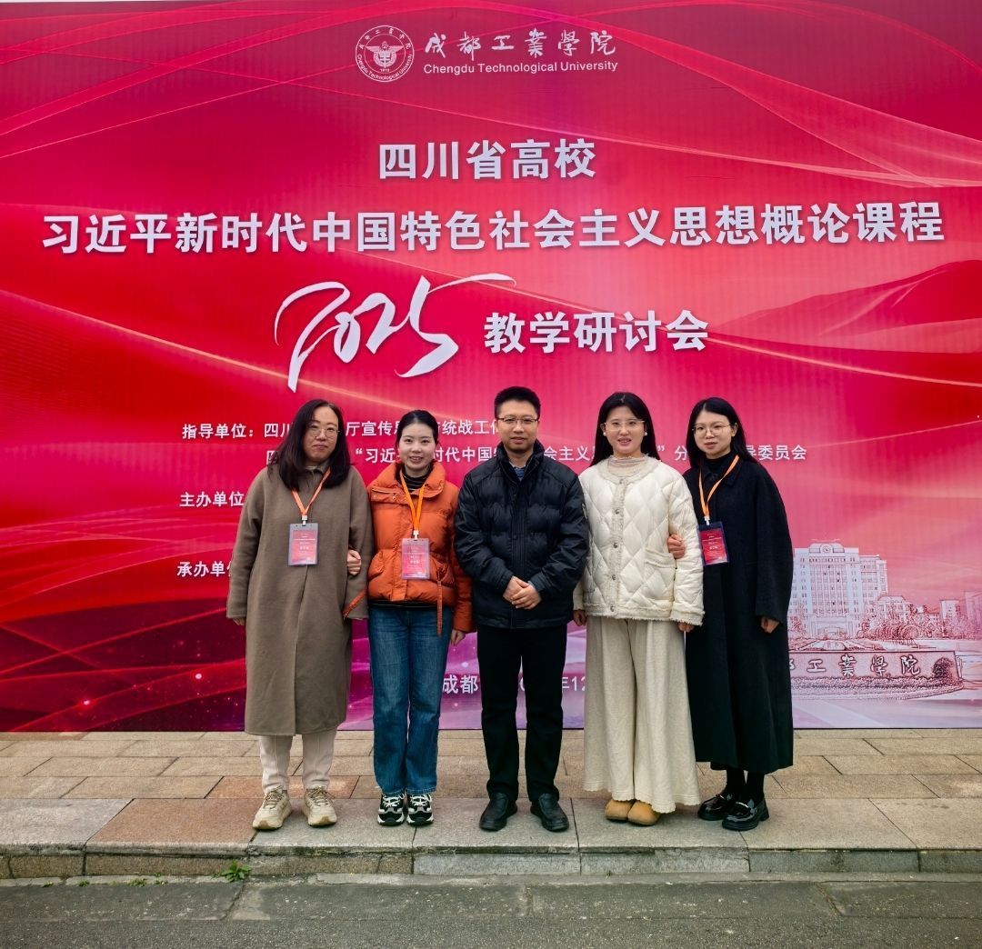 本网讯(文图/王中碧)为深入学习贯彻党的二十届二中、三中、四中全会精神,全面落实习近平总书记关于思政课建设重要指示和新时代学校思政课建设推进会精神,不断提高思想政治理论课教学质量,扎实推进习近平新时代中国特色社会主义思想进教材、进课堂、进头脑。2025年12月5日至7日,四川省高校“习近平新时代中国特色社会主义思想概论”课程教学研讨会在成都工业学院(郫都校区)召开。马克思主义学院韩俊、何源、陈丽芳、张艳沁、王中碧五位老师参加了本次研讨会。研讨会分为专题报告、教学展示、教学经验交流分享以及教学比赛等四项议程。