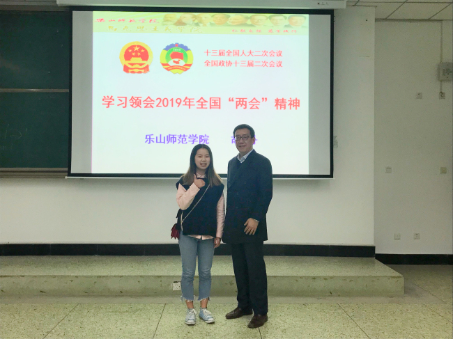 胡书记的讲授围绕三个“基本”即“了解‘两会’精神的基本视角”“2019年政府工作报告的基本精神”“贯彻好‘两会’精神的基本要求”展开。“今年是中华人民共和国成立70周年,那么重庆、成都、乐山分别是什么时候解放的呢?”“2018年中国国内生产总值增长6.6%,总量突破90万亿元,经济增量相当于澳大利亚2017年的经济总量。四川在全国的GDP排名如何?乐山在四川的排名又是第几?如何看待四川‘一干多支、五区协同’的区域发展格局?影响我们新校区建设顺利推进的主要因素是哪些?”“为什么同样遭受美国的打压,中兴和华为的表现迥然不同?”“必须增强自主创新能力,必须掌握关键核心技术!”“怎么理解今年国内生产总值的预期增速目标为6%-6.5%?”“怎样理解财政政策、货币政策和就业优先政策这三大宏观调控政策的关系?”一个接一个的问题,逐渐激发了同学们的理性思考。胡书记在授课结束前谆谆教诲同学们:要把学习贯彻全国“两会”精神与调整个人职业生涯规划结合起来,密切关注与自身专业和职业规划相关的政策;要把学习贯彻“两会”精神的政治热情不断转化为勤奋学习、全面发展的强大动力,努力争做担当民族复兴大任的时代新人。