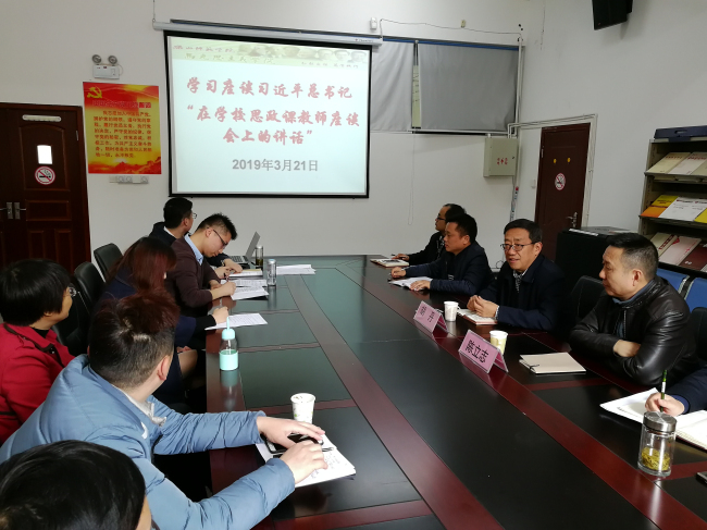 本网讯(文、图/王王)3月18日,中共中央总书记、国家主席、中央军委主席习近平在京主持召开学校思想政治理论课教师座谈会并发表重要讲话,我校马克思主义学院教师第一时间通过电视、网络、广播、“学习强国”学习平台等关注和了解座谈会,认真学习习近平总书记重要讲话精神,交流体会,畅谈感想。
